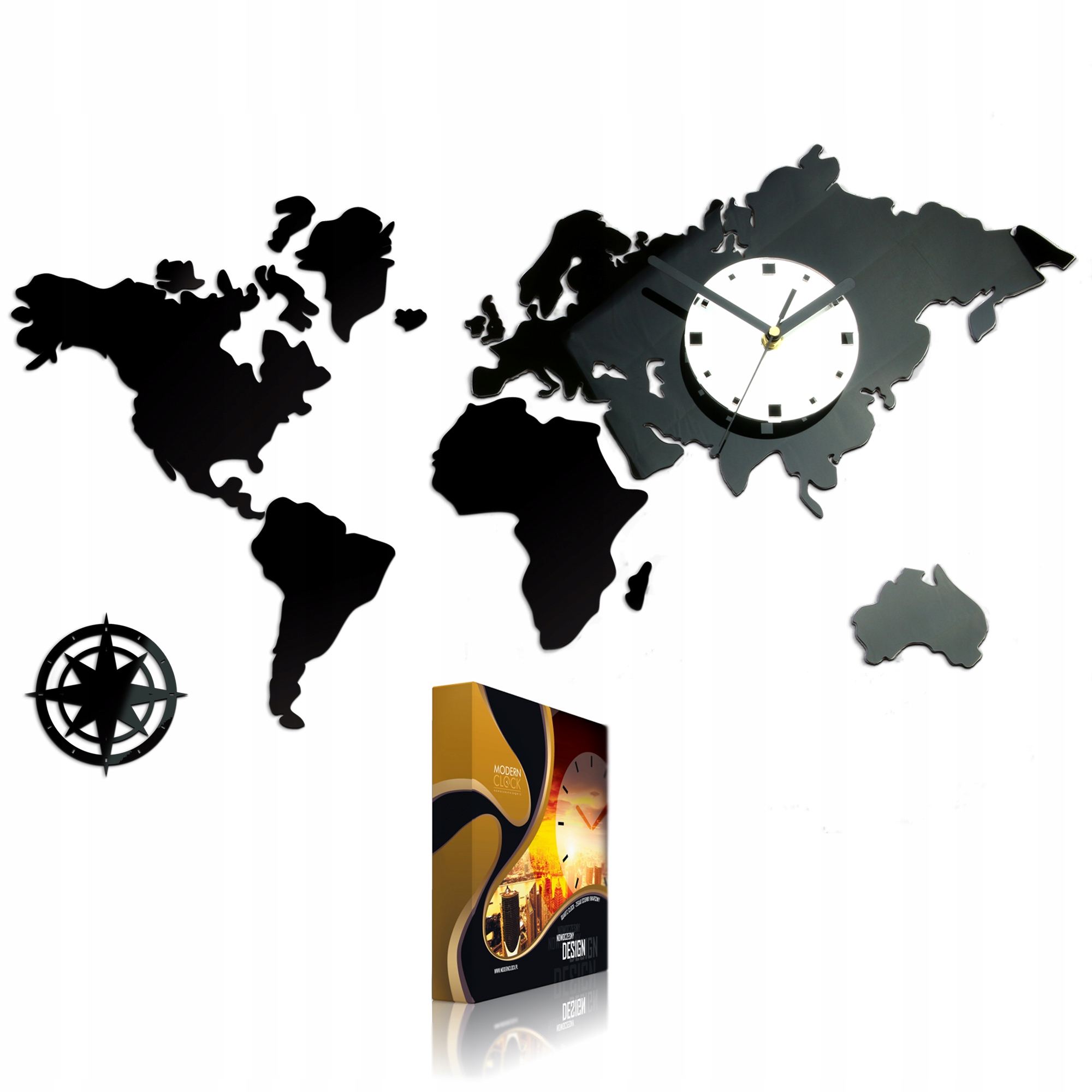 - Duży zegar ścienny Mapa 80x40 Nowoczesny 3d Cichy 8326198377 .